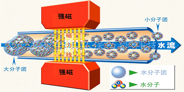 永磁高級催化氧化技術,主要采用永磁磁場理論,對污水中水分子、有機物分子、離子氛的團簇結構進行磁化作用,打破原先污水中各個微觀形態體的團簇結構,打破了水分子與有機物分子及離子的水合、締合效應,改變了污水的物理、化學、分子力學等性能,表現為: